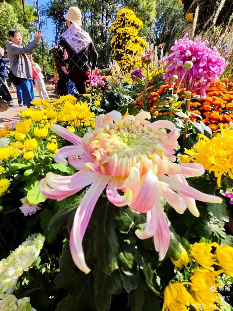 说菊花展上五彩斑斓一点不过过,阳光洒在菊花身上,给每片花瓣都镀上了一层柔和的光晕。阳光是菊花茁壮生长的底气,它汲取阳光的能量,把温暖藏进花蕊,然后舒展花瓣,用鲜艳夺目的色彩、优美的花姿、文雅的清香,无私奉献给人间。