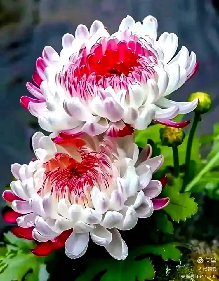 我从网上查询红白菊,下图红白双色菊就是从网上下载的照片,也是一种罕见的品种,好像和我拍到的白花镶红边的不大一样,这也是一朵花上有红白两种颜色,红的如火,白的似雪,色彩鲜艳夺目,十分养眼。如此巧妙搭配,真是绝佳,应该也是园艺师精心培育的优良品种。