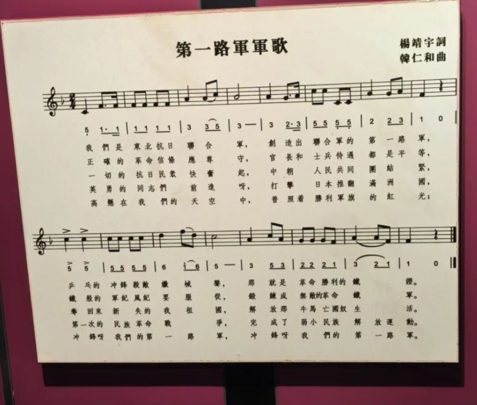 杨靖宇创作的《东北抗日联军第一路军军歌》,唱出了抗联将士们永不屈服坚持战斗的理由:“夺回来所失的我祖国,解放那牛马亡国奴生活”。