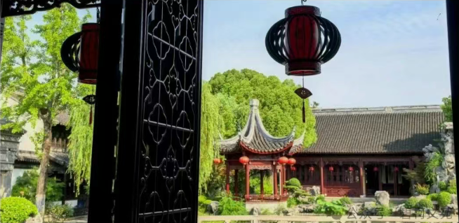 檀园的美,是会随季节换装的。初春,“谷诒燕翼”门楼下的玉兰花堆雪叠云,花瓣落在青石板上,走上去像踩碎了月光;盛夏,翏翏亭畔的紫薇开得如火如荼,与池中睡莲相映成趣,蝉鸣与水声织就天然的交响曲;暮秋,鸡爪槭将假山染成绯红,落叶飘进芙蓉沜,惊起群鱼争食;隆冬雪后,整片园林素裹银装,宝尊堂的红灯笼在白雪映衬下,红得像一团燃烧的炭火。