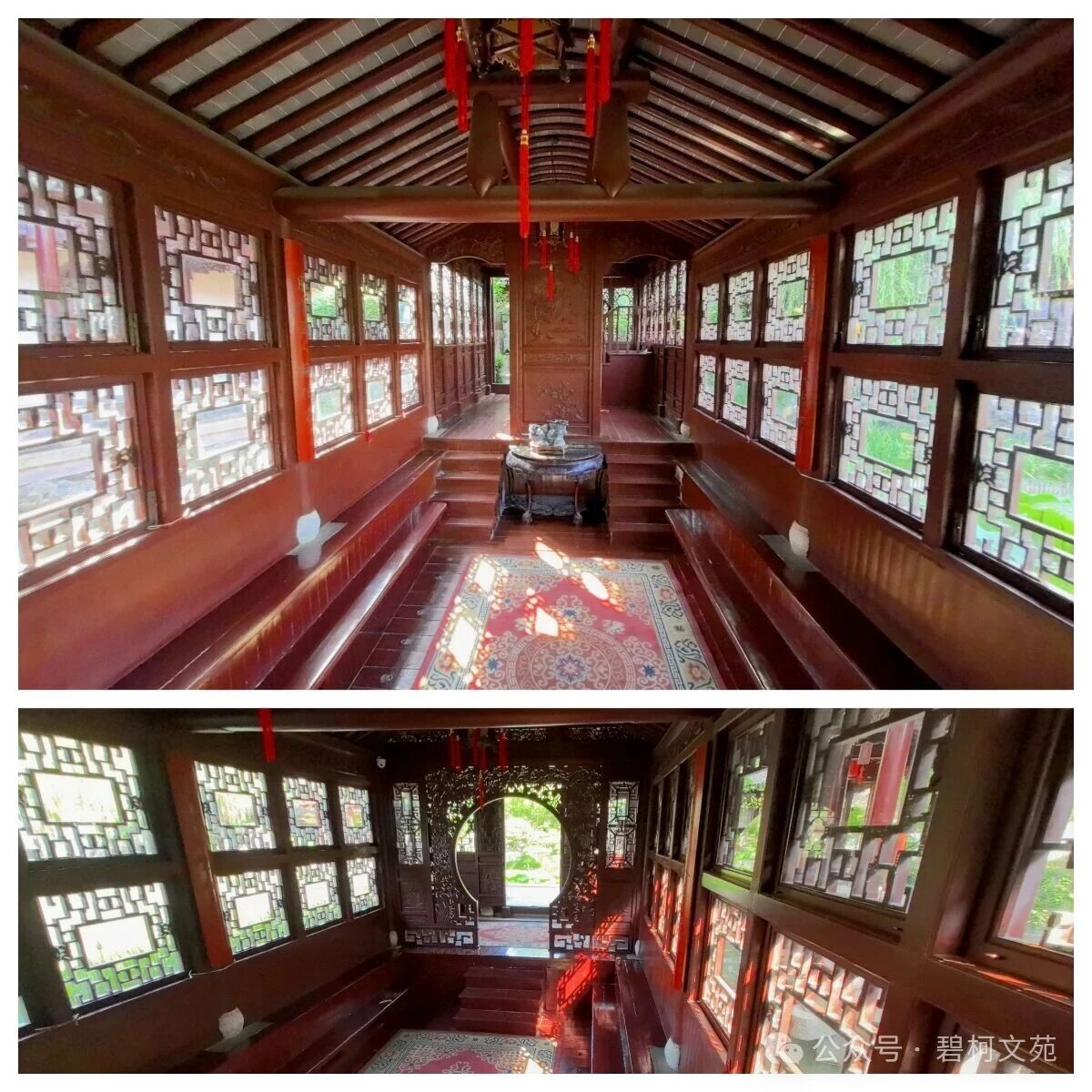 不同时辰来访,又会撞见不一样的惊喜。黎明时分,薄雾尚未散尽,画舫在水面若隐若现,宛如海市蜃楼;正午阳光最烈时,躲进次醉阁的美人靠,看阳光透过雕花窗在地上投下几何图案;黄昏则是摄影爱好者的盛宴,夕阳为亭台楼阁镀上金边,水面倒影被染成琥珀色,按下快门便是一幅天然的《晚园归棹图》。