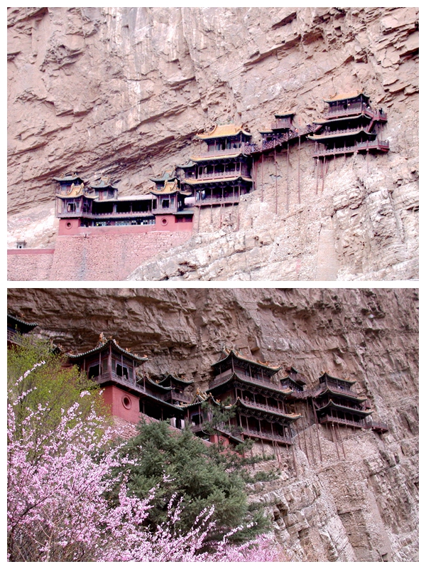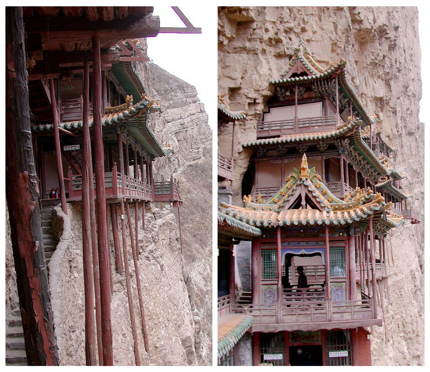 环顾国内各地和世界列国时,可以时常见到隐藏于深山幽谷之中,或凸现于陡峭顶峰之上的诸多宗教建筑物,如寺庙和教堂等。但是,真正紧贴峭壁,悬于半空的大寺当属位于我国山西省大同市浑源县恒山金龙峡的悬空寺。悬空寺曾称“玄空阁“,距地面高约60米。该寺始建于北魏太和十五年(491年),该寺距今已有1500多年历史,历代均有修缮,现存建筑以明、清遗构为主。这也是我国现存最早的儒、释、道三教合一的寺庙建筑群。
