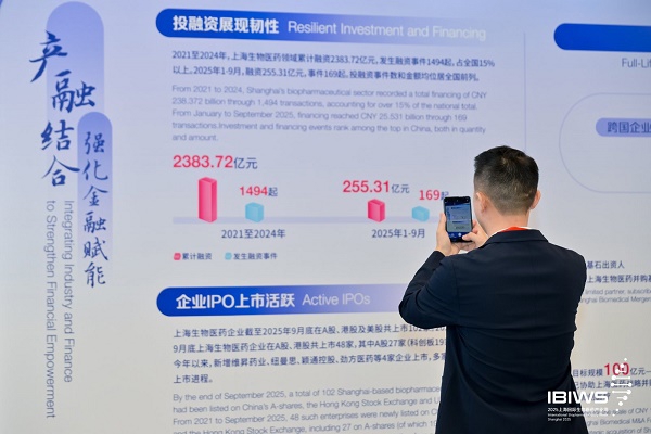创新药海外授权(License-out)数量和金额代表着创新实力的国际认可。走进与2025上海国际生物医药产业周(IBIWS)同期举办的上海生物医药创新成果展,一组上海创新药融入全球创新网络的最新数据令人振奋:2024年上海License-out交易数量38起,占全国35%;交易金额达307亿美元,占全国47%;并在2025年1至8月,即实现了37起交易数量和188亿美元交易金额,同比均实现了大幅增长,使中国药从原来全球医药领域的参与者,转变为守护全球健康举足轻重的贡献者。