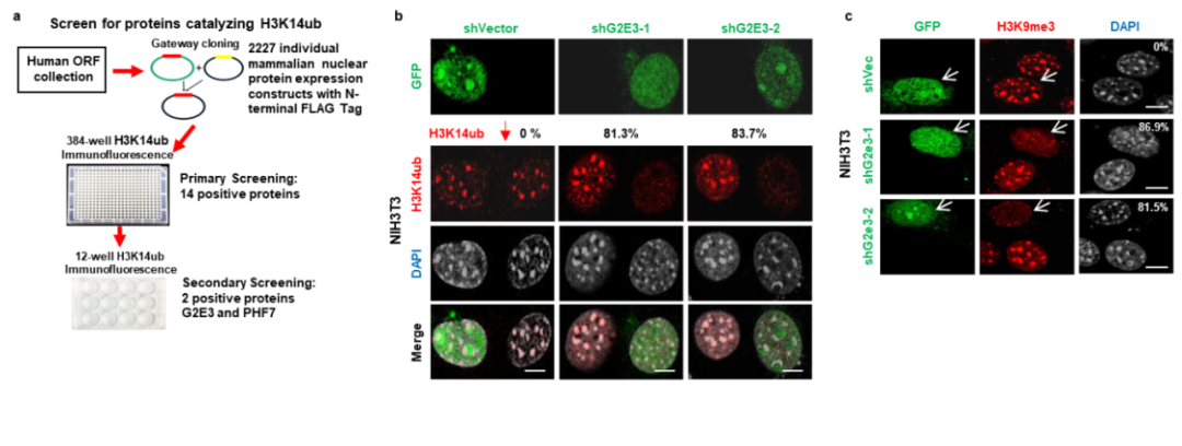 G2E3特异性催化近着丝粒异染色质H3K14ub,并调控H3K9me3的水平