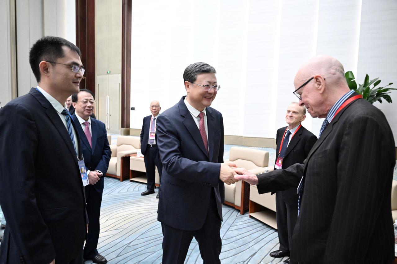 陈吉宁在致辞时说,中共二十届四中全会对“十五五”时期乘势而上、接续推进中国式现代化建设进行了系统全面的战略擘画,对以科技创新为引领、不断催生新质生产力、加快培育新动能作出重要部署,为抓住新一轮科技革命和产业变革历史机遇、深入实施创新驱动发展战略、全面提升国家创新体系整体效能提供基本遵循和行动指南。上海将深入学习贯彻中共二十届四中全会和习近平主席重要指示精神,聚焦基础科学、开放创新、人才成长深化探索,持续深耕基础研究,持续深化国际合作,持续厚植人才沃土,加快建设国际科技创新中心。上海将深化基础研究先行区建设,加强前沿技术和颠覆性技术布局培育,更好引领发展新质生产力。一体推进教育科技人才发展,加快建设高水平人才高地,支持青年科学家在重大科技任务中担重任、挑大梁。打造开放、公平、公正、非歧视的创新环境,与世界各国科学家携手推动知识、技术、数据等创新要素自由流动,共同破解全球性重大科学问题。持续弘扬科学家精神,激励科技工作者善抓“好问题”、甘坐“冷板凳”、勇闯“无人区”。希望各位科学家传播真理、传播真知,提携后学、甘当人梯,把科学种子和创新梦想撒进青年人心中,为上海科技创新、为世界科学进步贡献智慧力量。