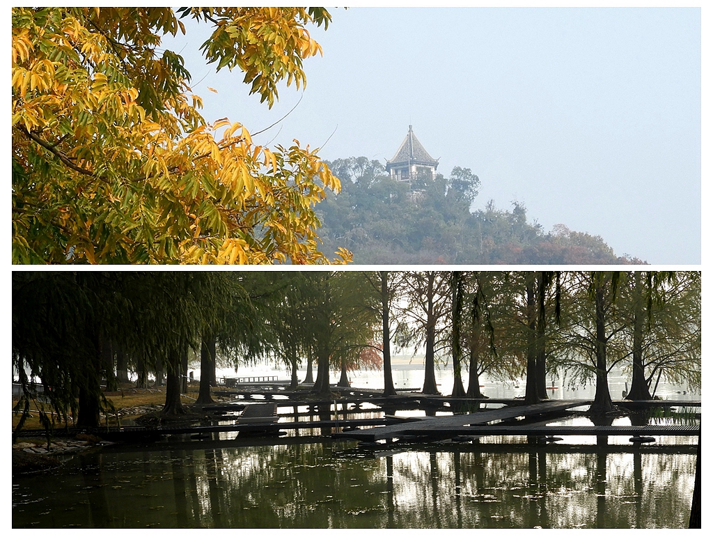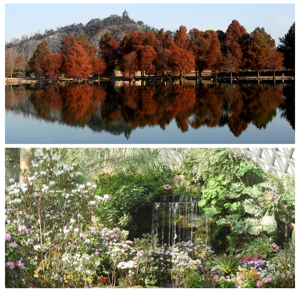 在天高气爽的秋季,随着气温的下降,叶色多变,整个植物园内,红、橙、黄、绿、紫不同色彩充满眼帘,如同从天而降的调色板;