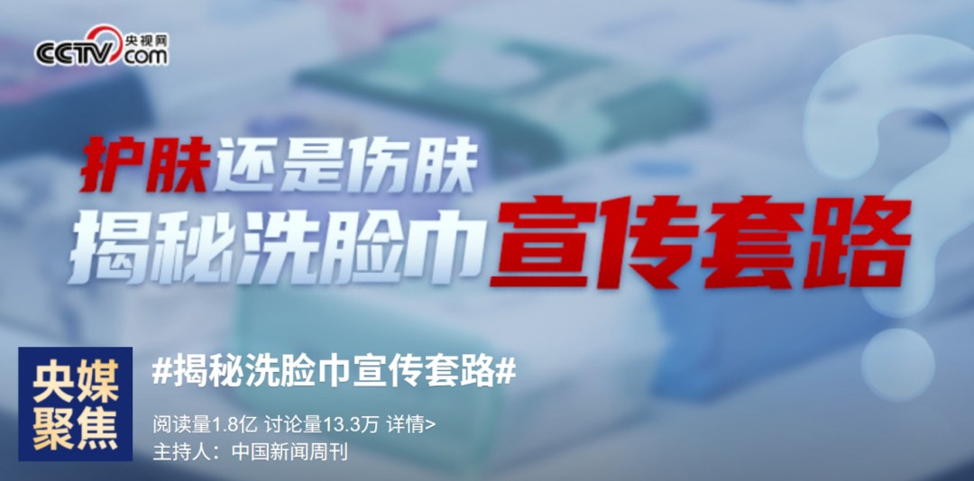 最近央视网曝光:市面上23款在售洗脸巾中,有21款检出化学物质残留,只有2款明确标注“100%棉”的产品合格。