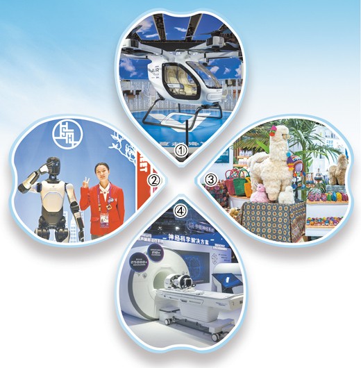 图①:第八届进博会技术装备展区的立邦展台。人民网记者翁奇羽摄图②:志愿者在第八届进博会新闻中心与“机器人志愿者”合影。新华社记者陈浩明摄图③:第八届进博会现场展出的羊驼玩偶。王初摄(影像中国)图④:第八届进博会医疗器械及医药保健展区的复星医药展台。人民网记者翁奇羽摄