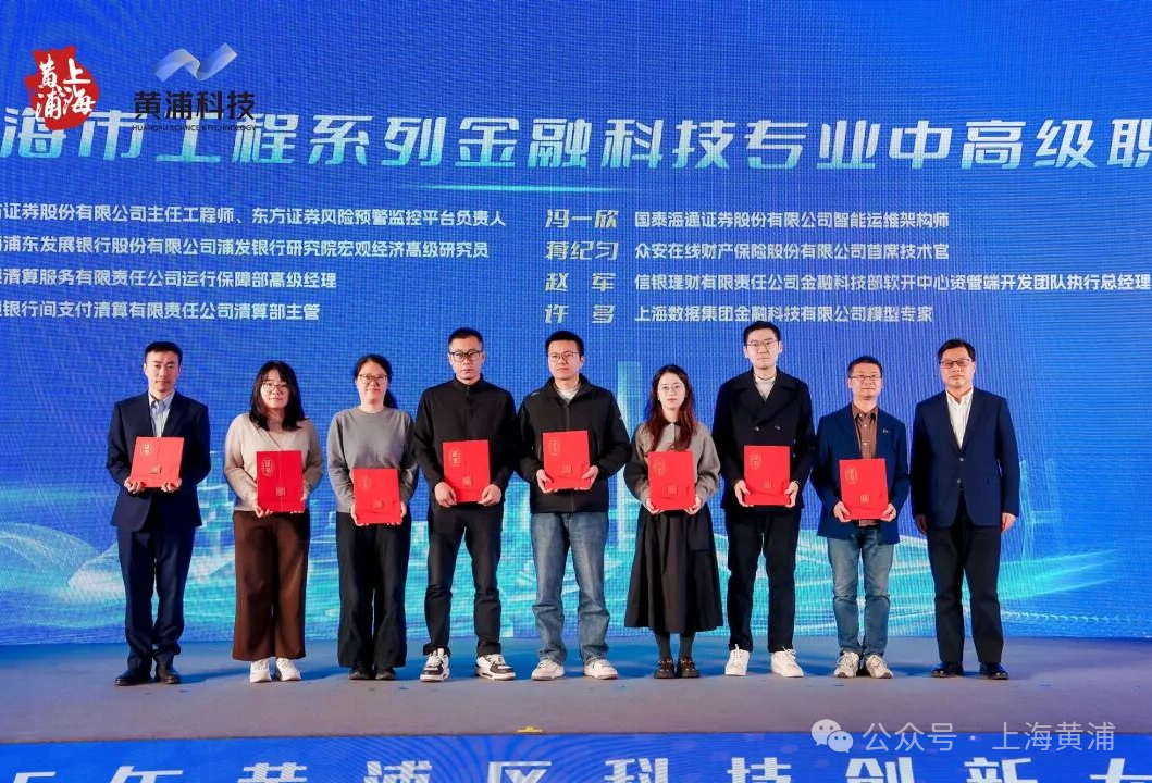 会上先后向我区各类先进代表颁发2024年上海市科学技术奖、2025年黄浦区卓越发展科创企业纪念册、2025年《门楣之光·黄浦区科创英才引进培育实施办法》获奖励人才纪念册、首批上海市工程系列金融科技专业中高级职称证书。