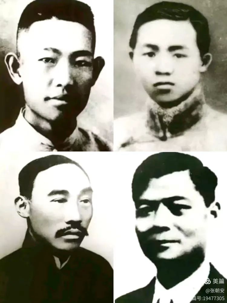 下图中四位一大代表上排左一王尽美,为党的事业操劳成疾,1925年病逝,年仅27岁。右一邓恩铭被叛徒出卖,1929年被捕。1931年牺牲。下排左一何叔衡1935年在福建突围战中牺牲,时年59岁。下排右一陈潭秋,1943年被新疆军阀盛世才杀害。