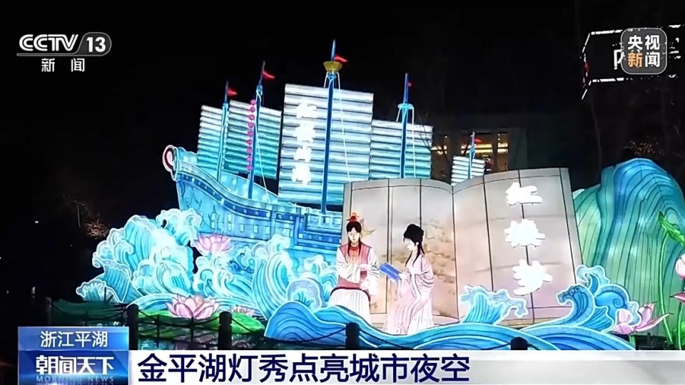 2月7日晚,在浙江平湖市,2026金平湖灯秀点亮城市夜空,为市民游客奉上了一场光影视觉盛宴。