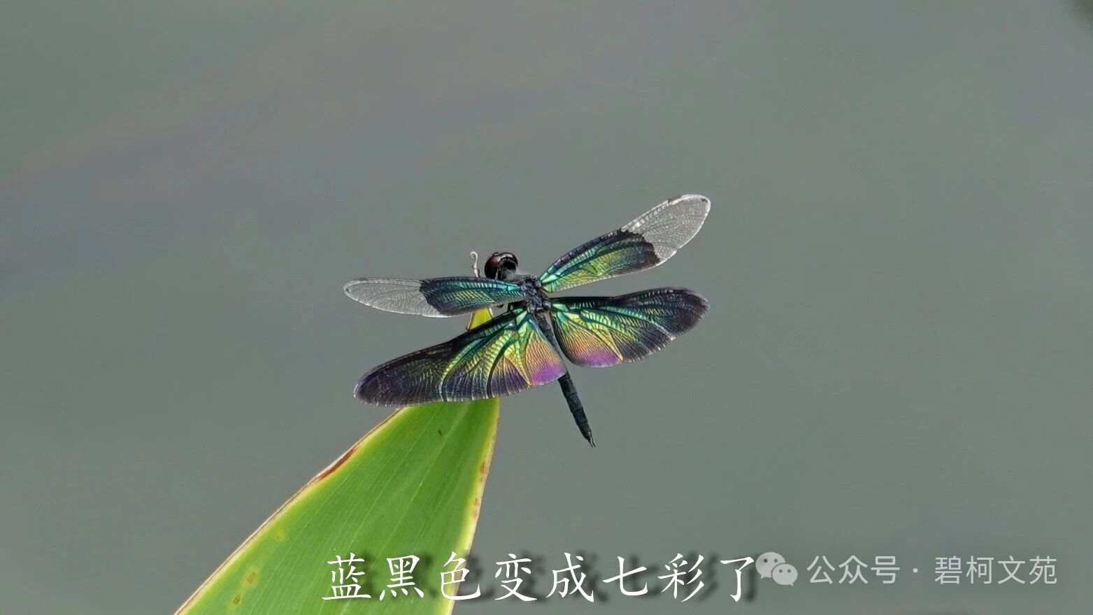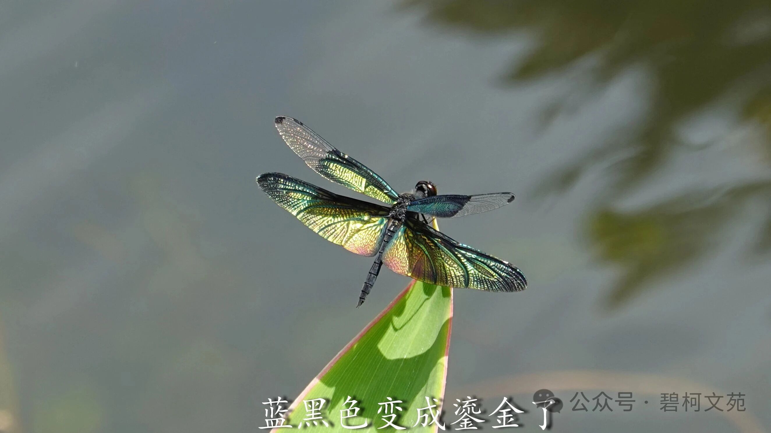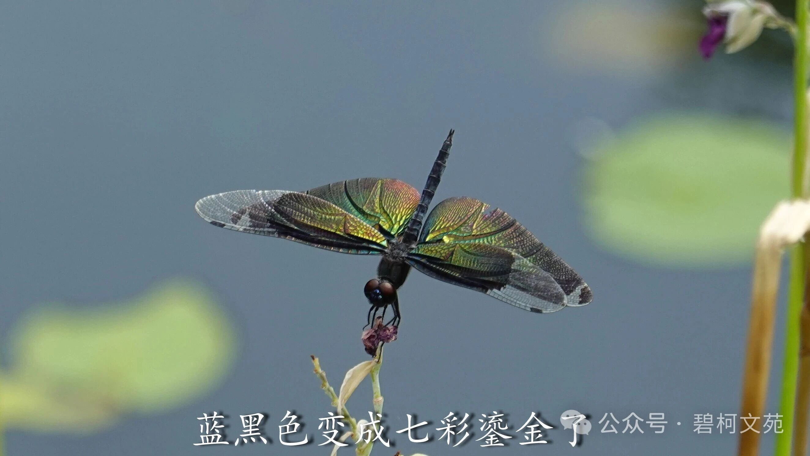 川剧变脸有各色各样的脸谱,小小的黑丽翅蜻也会展示各式各样的颜色,我最喜欢的还是彩虹色。黑丽翅蜻是夏日水域里靓丽的百变小精灵,给许多热爱小动物的退休老人们带来了欢乐。如果您也感兴趣,到了夏天记得去找找它们哦。