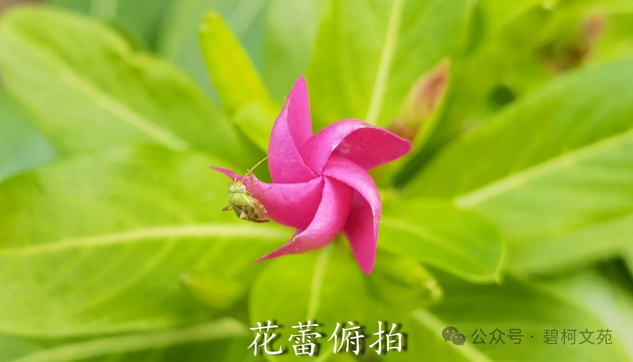 毫无疑问,摄影可以凝固花朵的美丽,留住花朵最美的时光,是各种赏花的重要手段。但同样拍一朵花,有时候换个角度会带来想不到的效果。例如,长春花是路边常见的花卉,有白色、粉色、红色、鳟鱼红和紫红色,等等。图1和图2是常见的拍摄方式,没有什么奇特的地方。但换个角度,垂直俯拍含苞待放的长春花花蕾顶端,却拍出一架袖珍版的“小风车”(图3~4),大自然的神奇让人叹为观止!