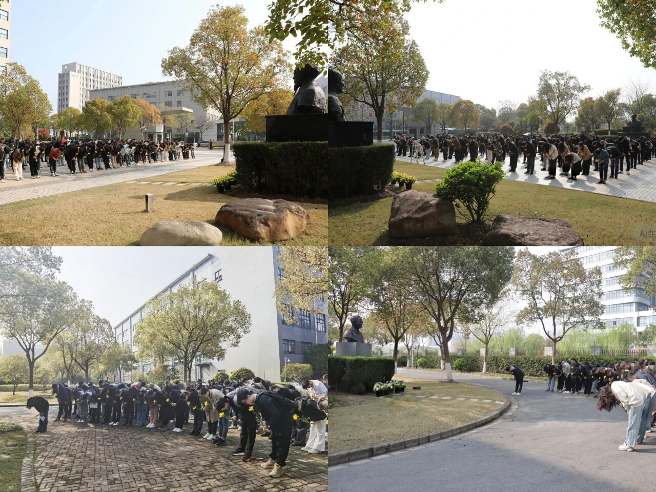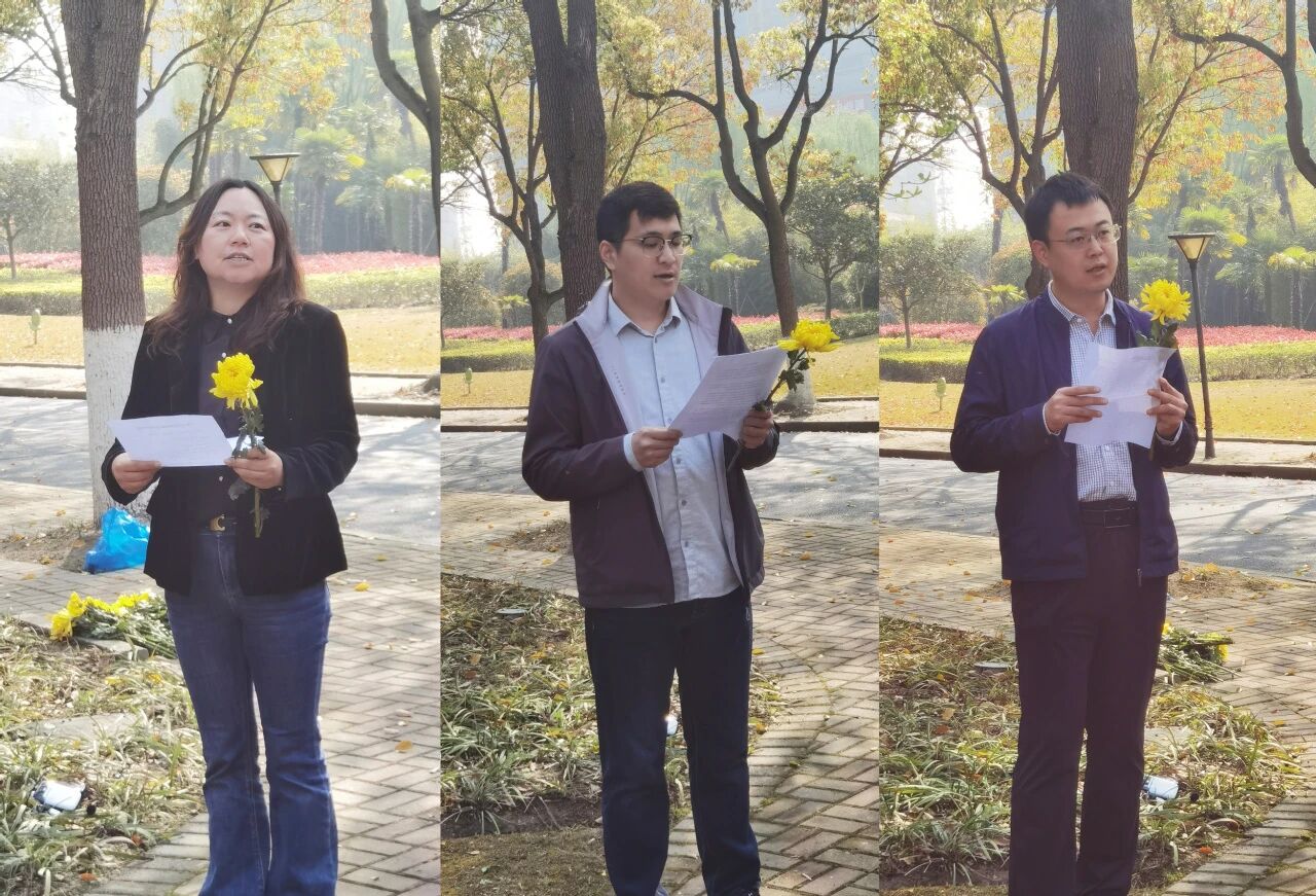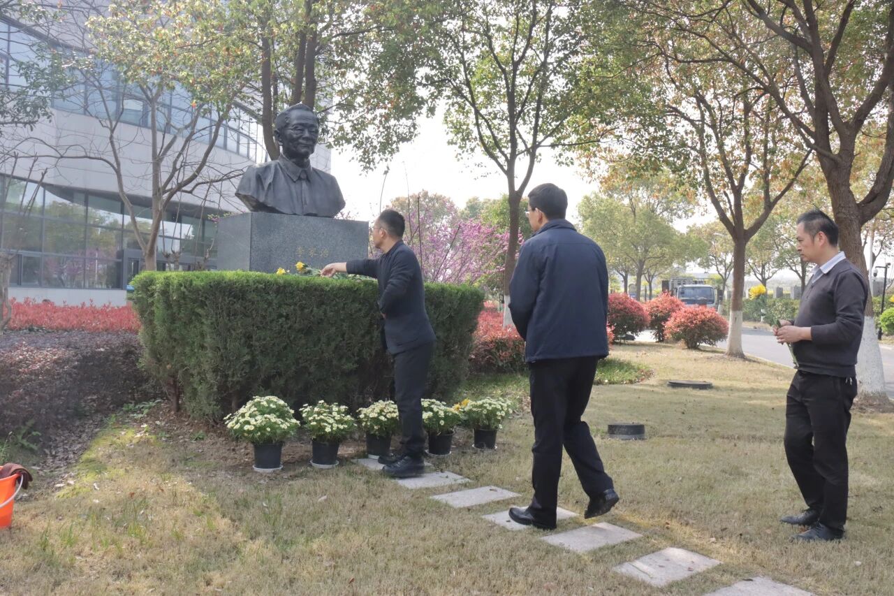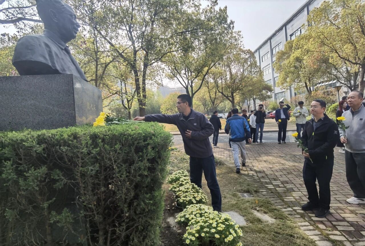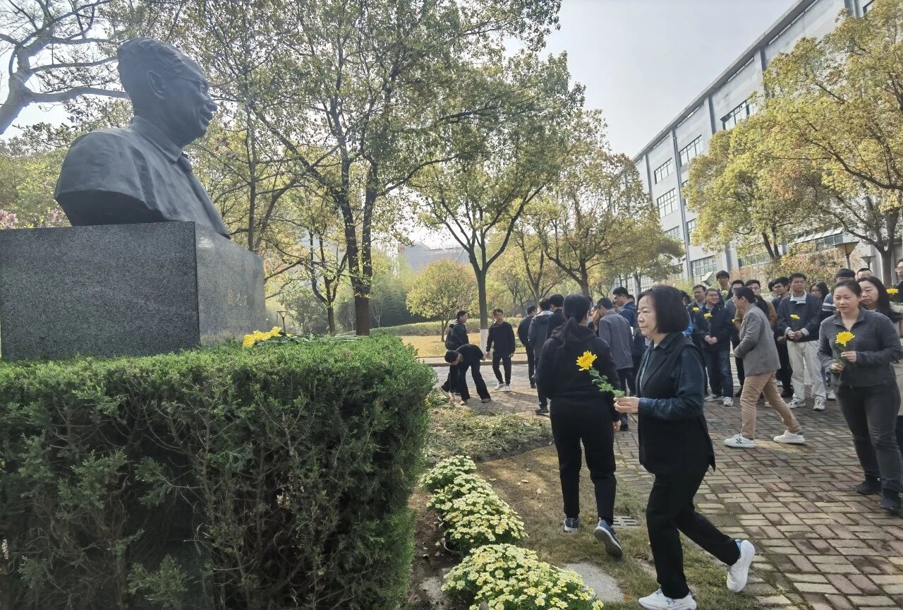 参加仪式的职工与研究生在雕像前整齐列队,气氛庄严而肃穆。在工作人员组织下,集体瞻仰雕像并行鞠躬礼,手持黄花依次缓步走到雕像前献花,以朴素深沉的方式,深切缅怀和致敬为研究所早期成立和开辟学科方向作出杰出贡献的老先生。