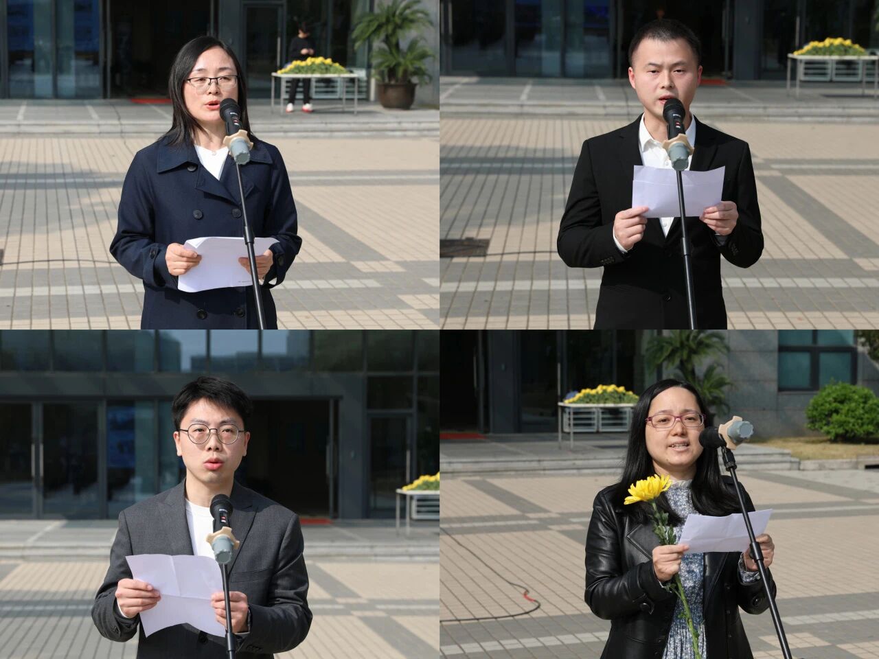 在“之文楼”前的殷之文先生雕像前,弘扬科学家精神宣讲团成员、能源材料研究中心王凡奇高级工程师作为宣讲代表,生动讲述了殷之文先生在功能陶瓷、闪烁晶体等领域攻坚克难、勇攀高峰的科研故事,展现了他以国家需求为导向、潜心钻研、精益求精的治学品格。青年科研人员代表、人工晶体研究中心张中晗副研究员在发言中表示,将以殷之文先生为标杆,立足国家重大战略需求,敢于挑战技术难关,善于攻克关键核心技术,把个人科研追求融入国家科技发展大局。特种涂层中心党支部书记孟佳主持活动。