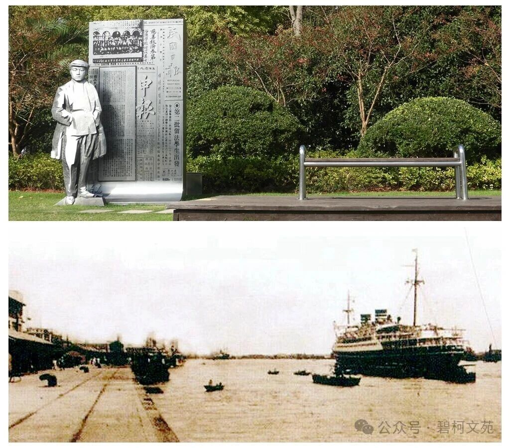 外滩曾经是人流和物流“迎来和送往”的主要门户。历史上,来访的世界名人,如爱因斯坦、玻尔、泰戈尔等都在此登上中国大地。在20世纪初勤工俭学热潮中,周恩来、邓小平、陈毅等均此处登船赴法留学,回国后他们都成为了著名的革命家。1917年秋,我的父亲汤蠡舟得到公费资助、也是在北外滩汇山码头登船前往日本,就读于日本千叶医科大学。