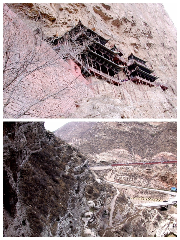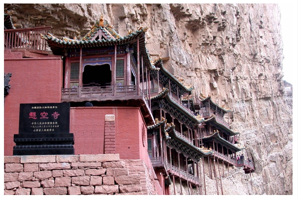 环顾国内各地和世界列国时,可以时常见到隐藏于深山幽谷之中,或凸现于陡峭顶峰之上的诸多宗教建筑物,如寺庙和教堂等。但是,真正紧贴峭壁,悬于半空的大寺当属位于我国山西省大同市浑源县恒山金龙峡的悬空寺。悬空寺曾称“玄空阁“,距地面高约60米。该寺始建于北魏太和十五年(491年),该寺距今已有1500多年历史,历代均有修缮,现存建筑以明、清遗构为主。这也是我国现存最早的儒、释、道三教合一的寺庙建筑群。