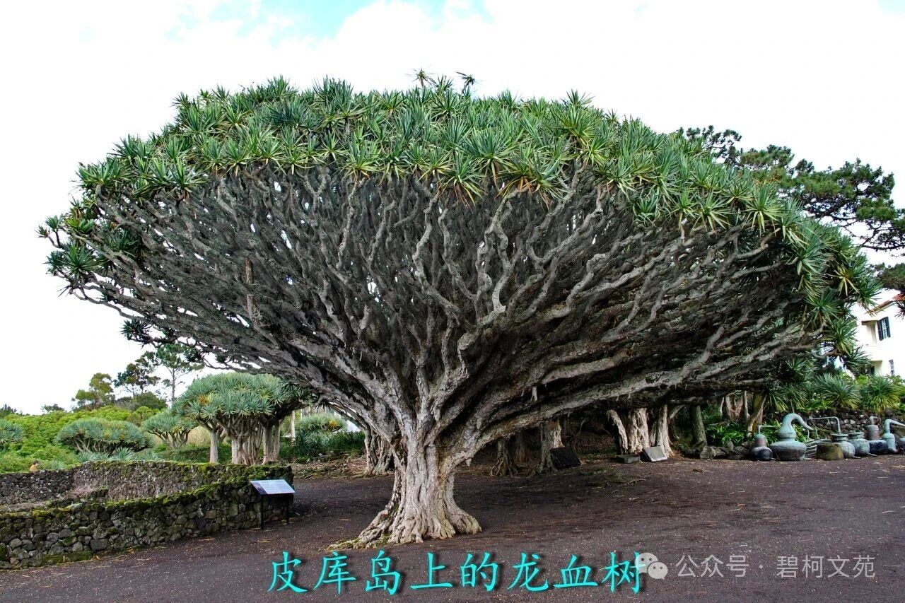2013年,我前往亚速尔群岛出差,在皮库岛上看见成片的龙血树,非常震惊。开始以为是人工林,后来发现林子边上立着一块参观指南,这才明白这片林子是龙血树自己成林的。参观指南里言简意赅地介绍了龙血树,据称龙血树是大西洋马卡罗尼西亚群岛的特殊树种,除了作为观赏植物外,早先还利用龙血树的红色树脂作为染料、清漆、封蜡等。很有意思的是,参观指南的标题是:Shrine of the Dragon Trees. 将龙血树林子称为Shrine(圣地),很好地诠释了葡萄牙政府和民众喜爱和保护龙血树的意愿。事实上,世界自然保护联盟(IUCN)亦已将易危的龙血树列入濒危物种红色名录。