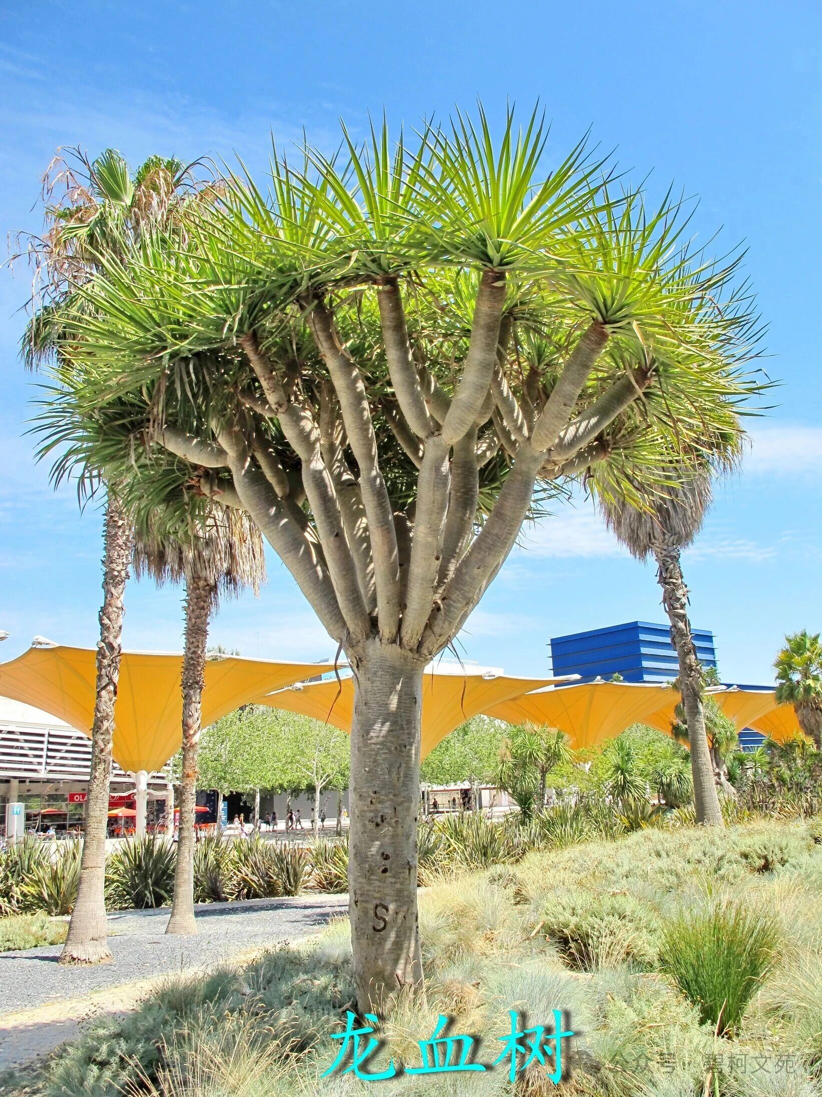 我第一次看见龙血树是在葡萄牙里斯本阿茹植物园,其中一棵长得快散架的龙血树号称树龄300多年,是该植物园的镇园之树。