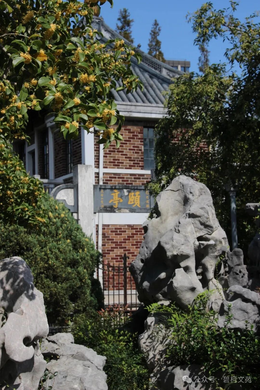 四教厅前的丹桂林最是惹眼。橙红的花瓣在阳光下泛着珊瑚色光晕,与粉墙黛瓦相映成趣。摄影爱好者架着长枪短炮,追拍花瓣间穿梭的蜂蝶,镜头一转,又定格下穿汉服的姑娘——她正抬手接住飘落的花瓣,发间银簪与丹桂同色。“这是‘状元红’,往年要等霜降才开,今年和金桂凑一块儿了。”戴眼镜的老者指着树牌科普,牌上“23 个品种 1000余株”的字样,被阳光晒得暖融融的。