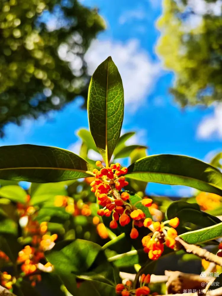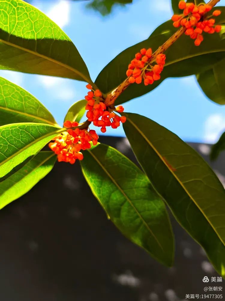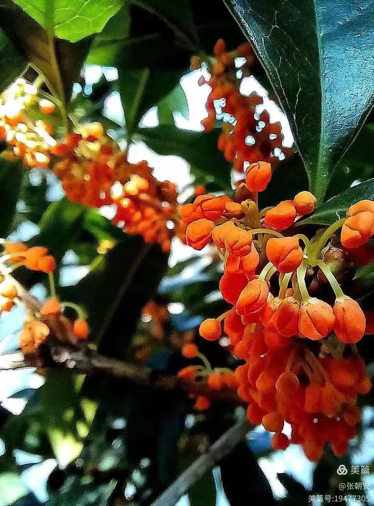其实,桂花是很低调的,一粒粒小米粒似的,挤在一起挂在碧绿的枝头,花容一点都不张扬。每朵桂花都宛如小精灵,在翠绿欲滴的叶间舞动着生命的旋律。桂花的色彩也不多,我见过淡黄、金黄、铁锈红的。阳光下,小小的花儿晶莹剔透、熠熠生辉,为秋天增添了一道绚丽多彩的风景线。