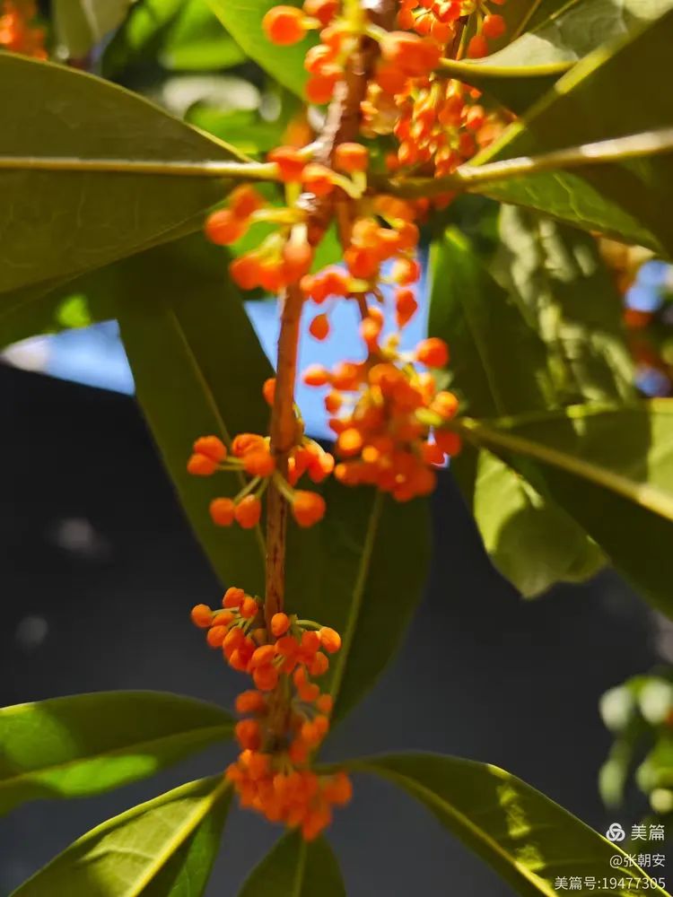 桂花香可以说人人喜爱,夕阳西下,彩霞映红了天空,若在水边绿地等地散步,或在某个不经意的角落,阵阵桂花香袭来,而且很有穿透力,远远就能闻到这独特的甜香,你会不知不觉沉醉于这迷人的秋光中。