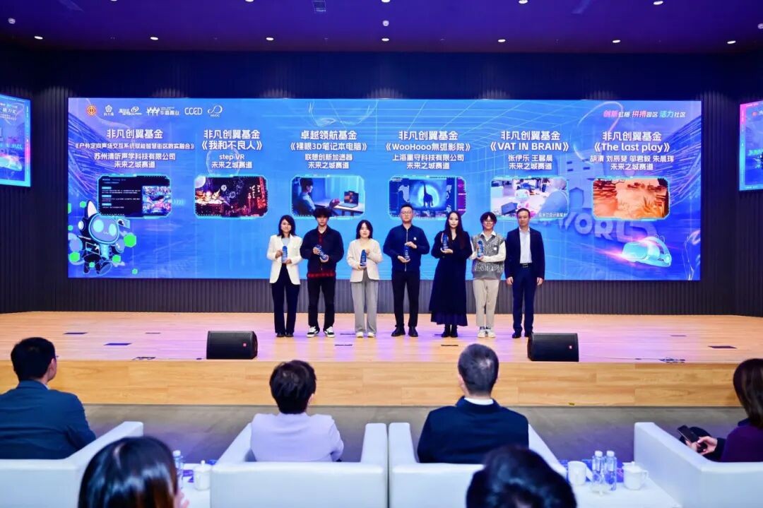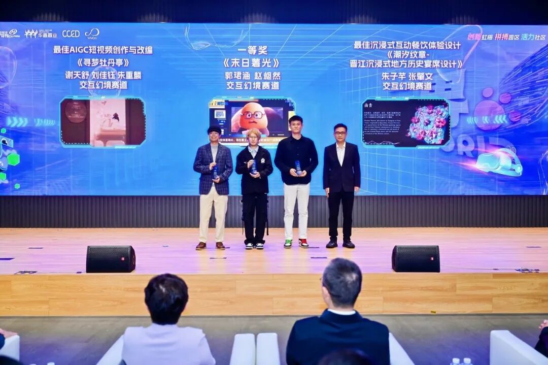 颁奖仪式上,赛事最高荣誉“元点奖”获奖者数企(上海)人工智能科技有限公司代表登台展示作品《数伴》,生动诠释了大赛“元创未来、智启新境”的理念——通过推动人工智能技术在元宇宙创意设计中的应用,助力漕河泾元宇宙街区建设,努力打造可落地、可实施的应用示范标杆,聚集元宇宙人才资源,构建街区创新产业生态。