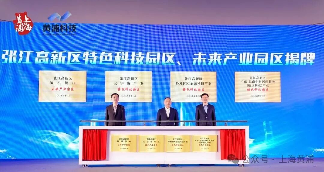 张江高新区特色科技园区、未来产业园区在会上揭牌。2025年,黄浦区在市科委的指导下,打造了张江高新区外滩FTC金融科技特色科技园区、广慈-思南生物医药服务特色科技园区、元宇宙产业特色科技园区和脑机接口未来产业园区,为细分赛道产业发展提供了高能级平台支撑。未来,黄浦将持续提升张江黄浦园能级,突出全面深化改革主线,优化园区体制机制建设,重点发展以金融科技为代表的主导产业,打造以临床研究服务为代表的特色产业,培育以脑机接口为代表的未来产业,依托特色科技园区与未来产业园区,形成创新生态,助力产业发展。