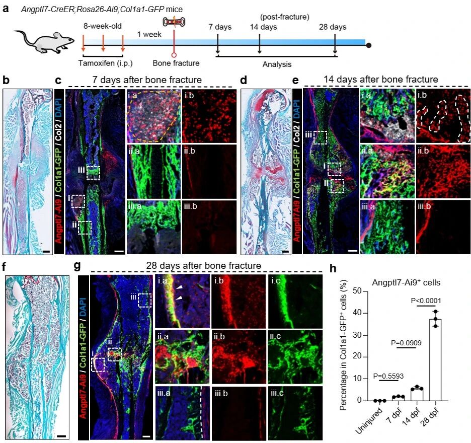 Angptl7谱系细胞在骨折后大量激活,通过软骨内成骨介导损伤修复