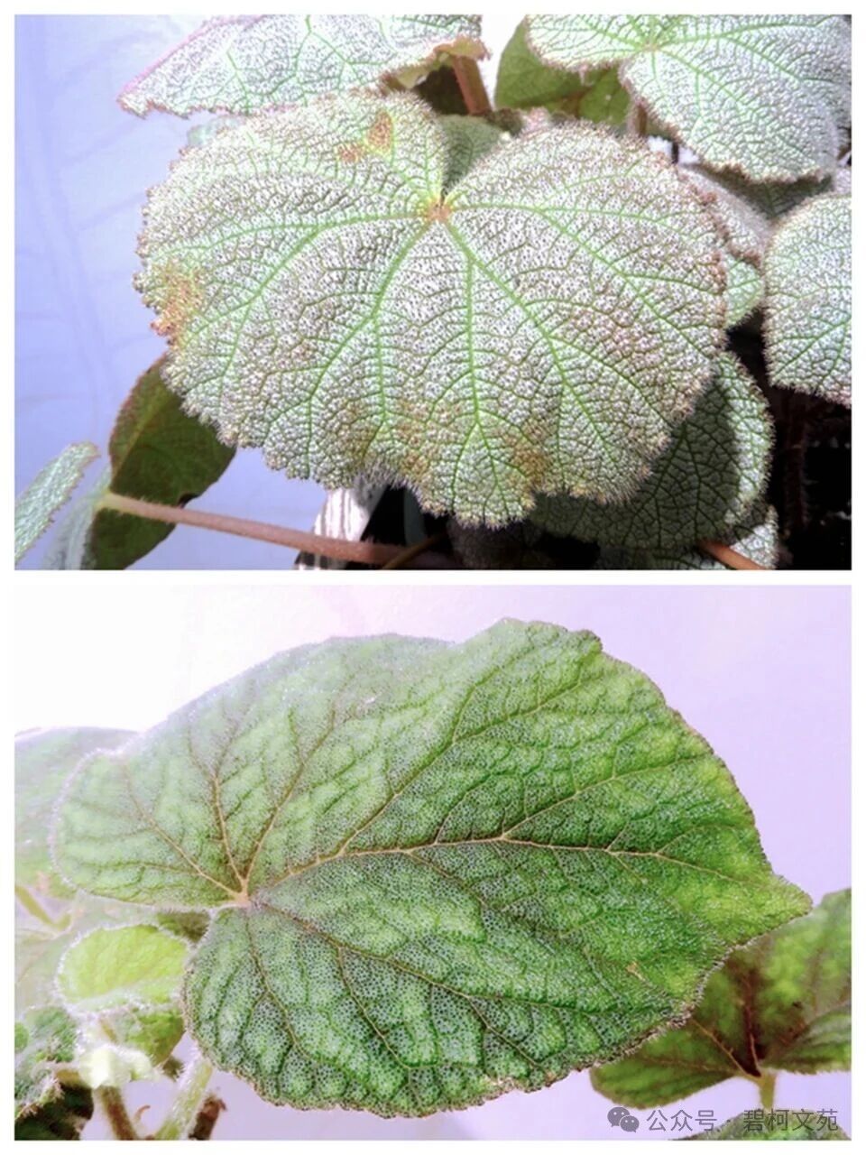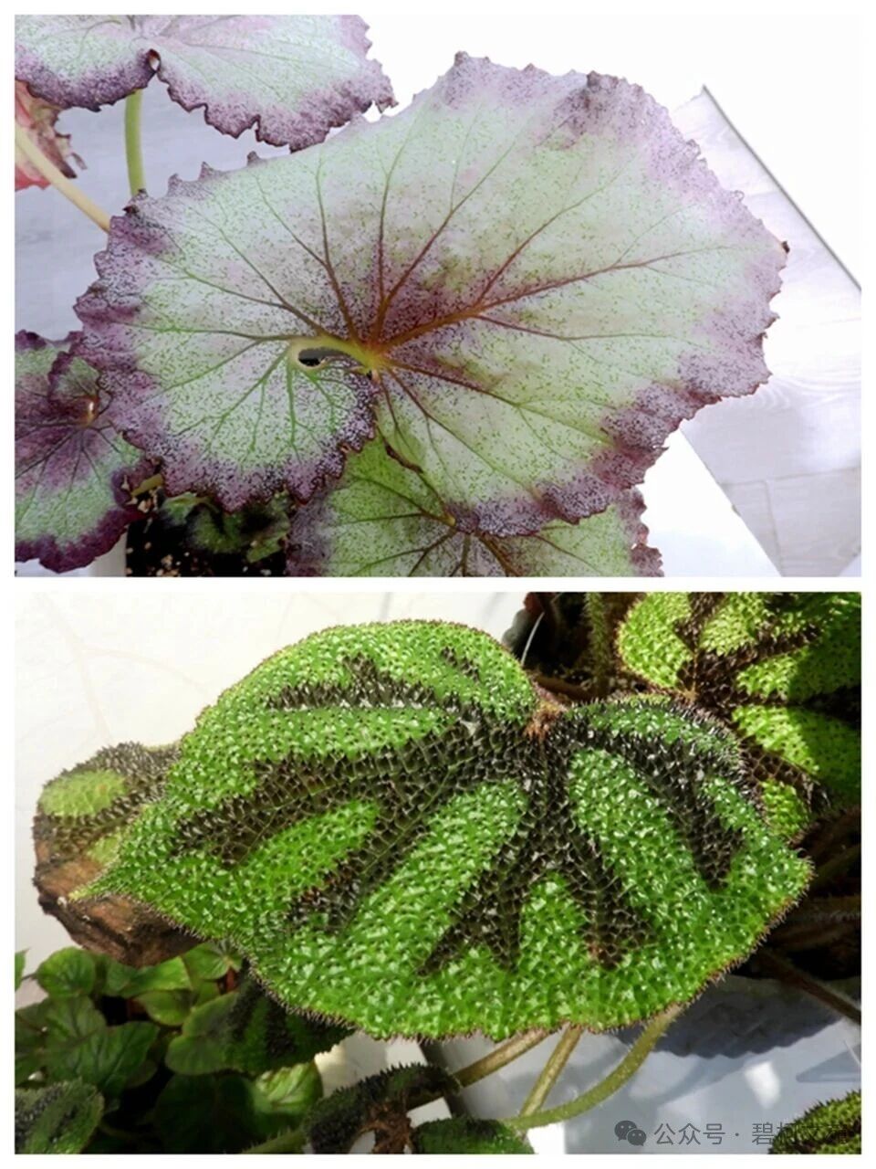 秋海棠有数以千计的物种,呈现出千奇百怪的叶片,其结构、形态、纹路和色调的反差之大,难以言表。叶形有盾形也有圆形(图4),纹路有粗也有细(图5),斑点有大也有小(图6),叶面有光面也有皱面(图7),毛刺有粗大也有细小(图8),叶裂有浅也有深(图9)。但是,万变不离其宗,进化至今,叶片都拥有粗细、方向各异的叶脉(图10~11),构成了叶片的“高速路”和“互联网”。