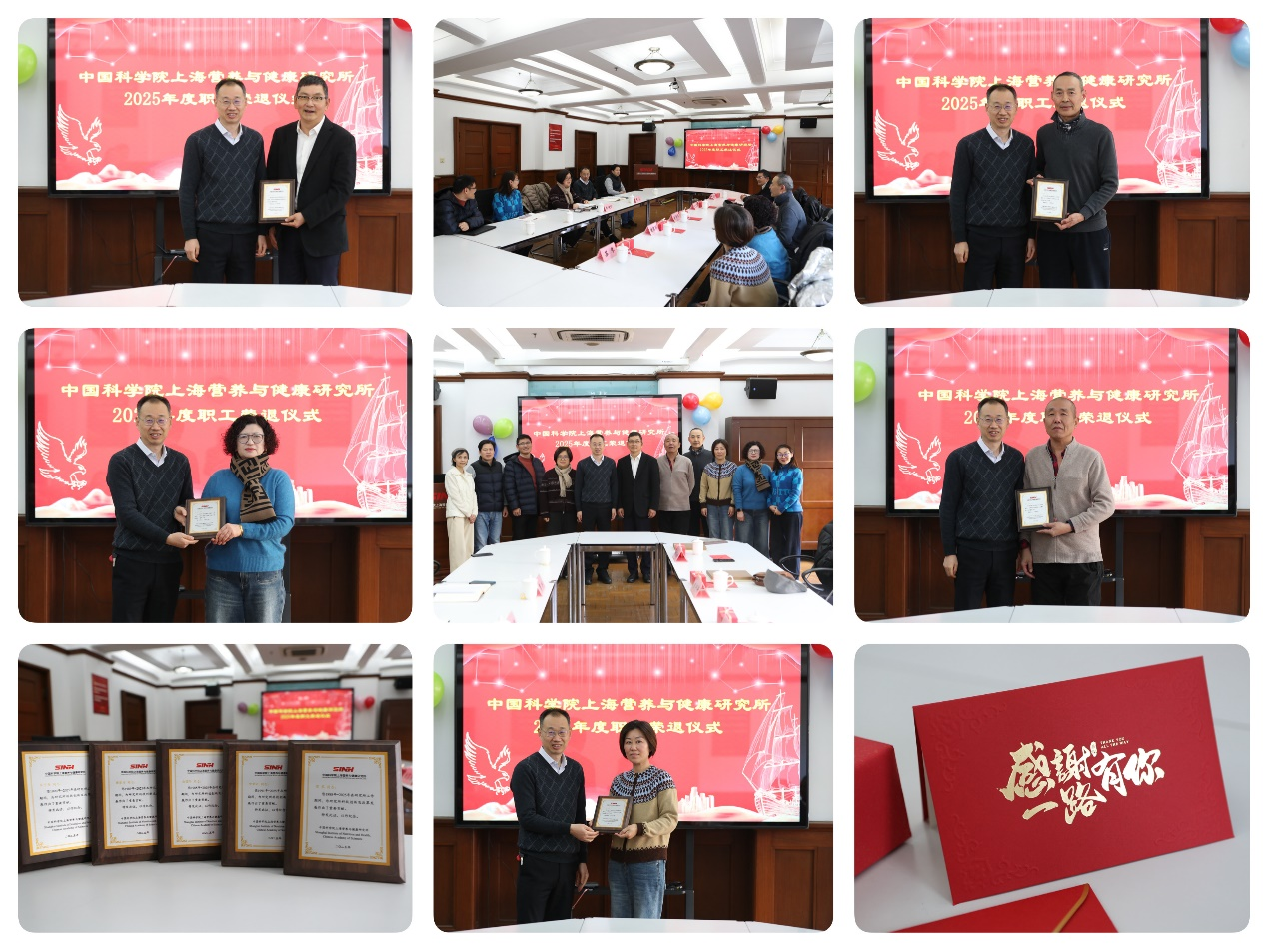 为深入贯彻落实习近平总书记关于老干部工作的重要论述,传递组织关怀和尊重,1月21日,上海营养与健康所举办2025年度退休职工荣退仪式,纪委书记曹永及相关部门负责人参加,与荣退职工们相聚一堂,共叙峥嵘岁月,共话美好未来。荣退仪式由党委委员、人事人才处处长陈建红主持。