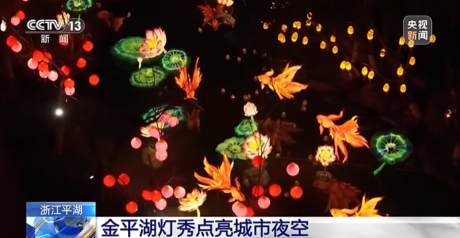2月7日晚,在浙江平湖市,2026金平湖灯秀点亮城市夜空,为市民游客奉上了一场光影视觉盛宴。