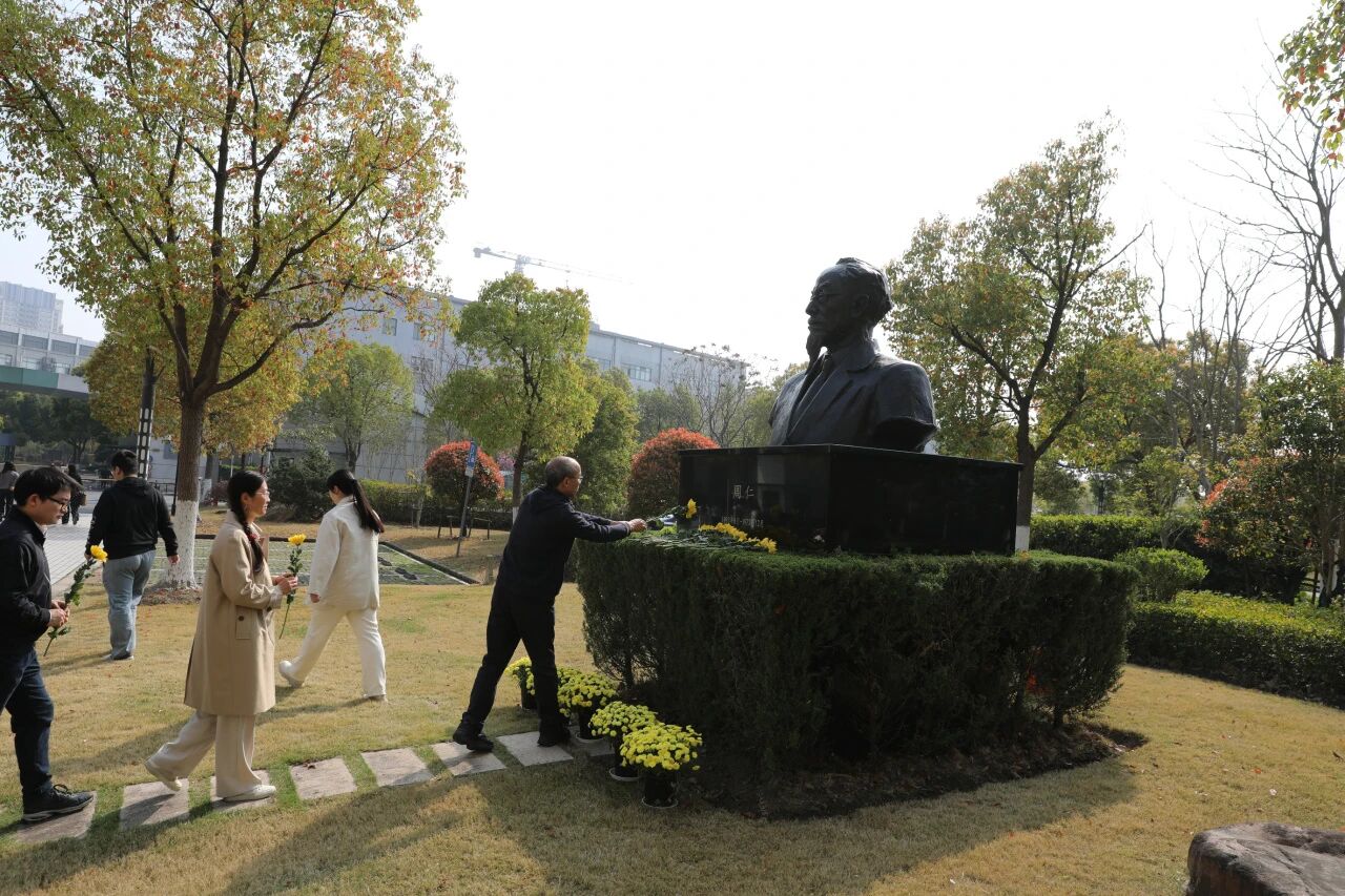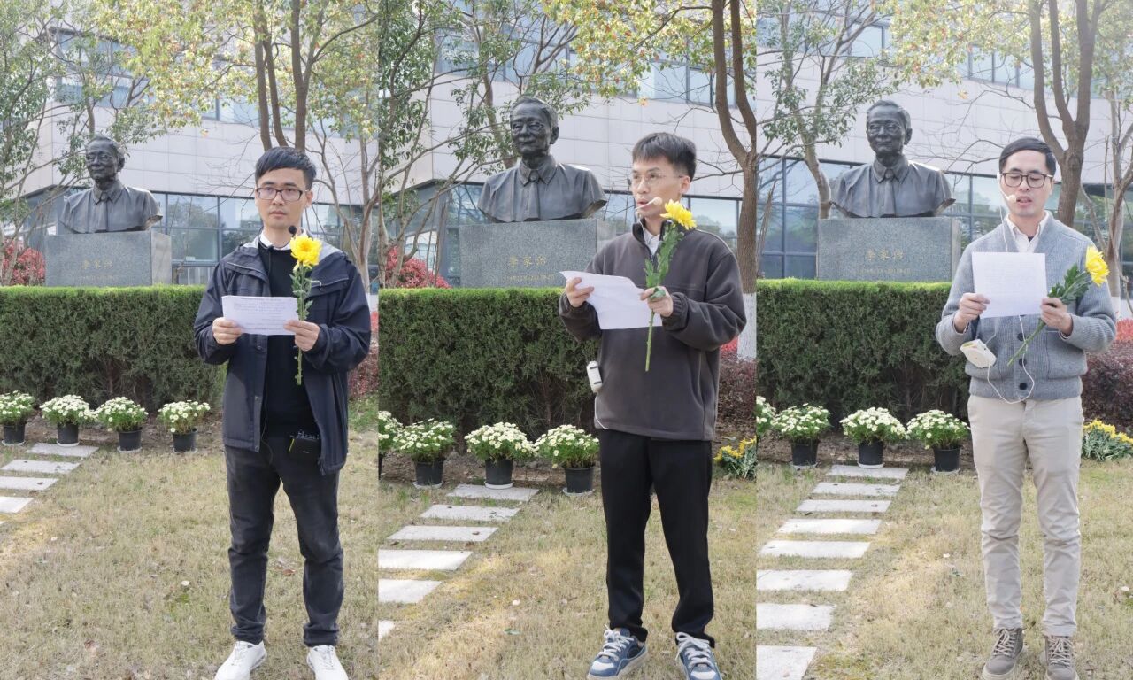 参加仪式的职工与研究生在雕像前整齐列队,气氛庄严而肃穆。在工作人员组织下,集体瞻仰雕像并行鞠躬礼,手持黄花依次缓步走到雕像前献花,以朴素深沉的方式,深切缅怀和致敬为研究所早期成立和开辟学科方向作出杰出贡献的老先生。