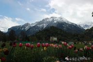 记得,晨雾像一层薄纱漫过瑞士因特拉肯的荷黑马特广场,草坪边缘的郁金香已抢先苏醒,姹紫嫣红。我坐在长椅上,看着彩色滑翔伞从艾格峰方向缓缓飘来,伞尖掠过柳丝与花丛的瞬间,东方的云雾忽然裂开一道缝隙——少女峰的雪顶如银簪破雾而出,光影交错间,竟让人想起柯南?道尔曾在此寻觅的灵感,也念及《007:女王密使》里那幕与雪山相融的经典镜头。
